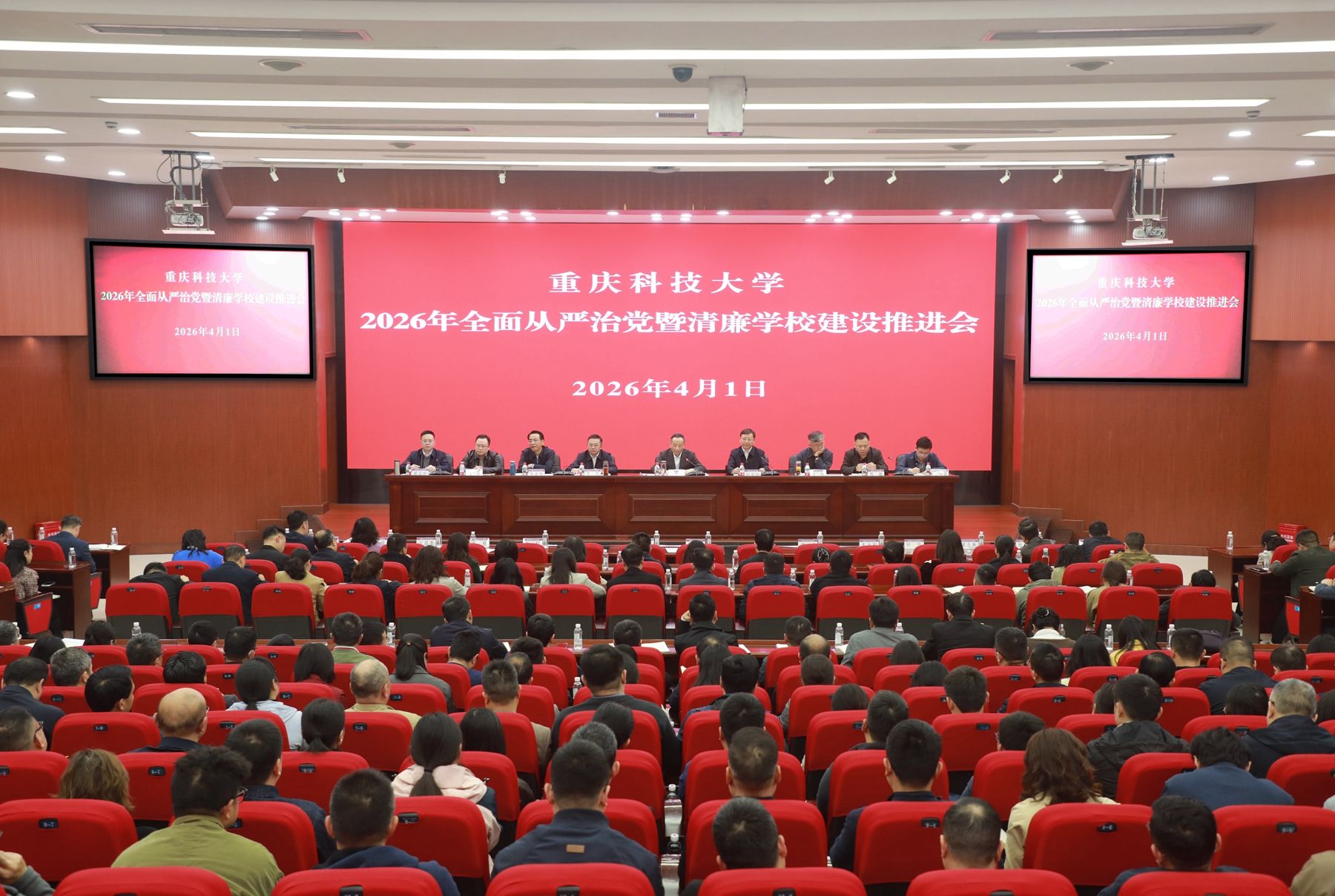 4月1日下午,学校在学术报告厅召开2026年全面从严治党暨清廉学校建设推进会,深入学习贯彻二十届中央纪委五次全会、国务院第四次廉政工作会议、六届市纪委五次全会、市政府第四次廉政工作会议以及教育部、市教委全面从严治党工作视频会精神,回顾总结2025年学校全面从严治党工作,分析当前全面从严治党新形势新任务新要求,部署安排2026年全面从严治党和清廉学校建设工作。全体在校校领导,全体处级领导干部、组织员、纪检员、...