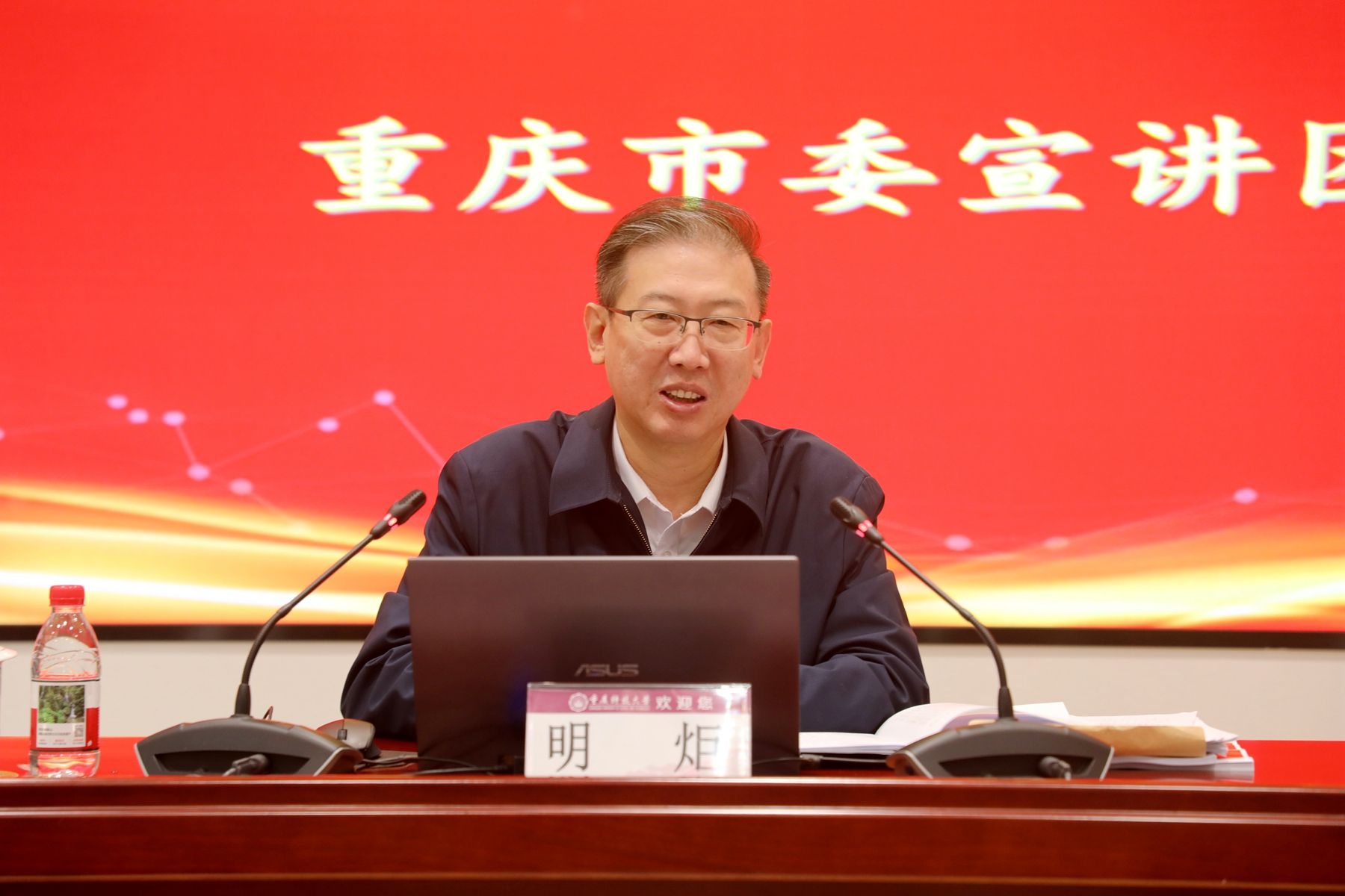 报告会上,明炬紧紧围绕学习贯彻习近平总书记在党的二十届四中全会上的重要讲话精神和全会审议通过的《中共中央关于制定国民经济和社会发展第十五个五年规划的建议》,从党的二十届四中全会召开的时代背景与重大意义、准确把握“十五五”时期在基本实现社会主义现代化进程中的重要地位、深刻领会“十五五”时期经济社会发展的指导方针和主要目标、全面理解“十五五”时期经济社会发展的战略任务和重大举措、坚持和加强党的全面领导凝聚起推进中国式现代化的磅礴力量、对标对表深谋实干以体系化推动四中全会精神在重庆一贯到底六个方面,对全会精神作了系统阐述和深入解读。明炬还结合我校办学定位,强调高校在人才培养、基础研究、成果转化、产学研协同创新中的重要作用,鼓励学校主动对接重庆“33618”现代制造业集群和“416”科技创新布局,为地方科技创新和产业升级贡献高校力量。