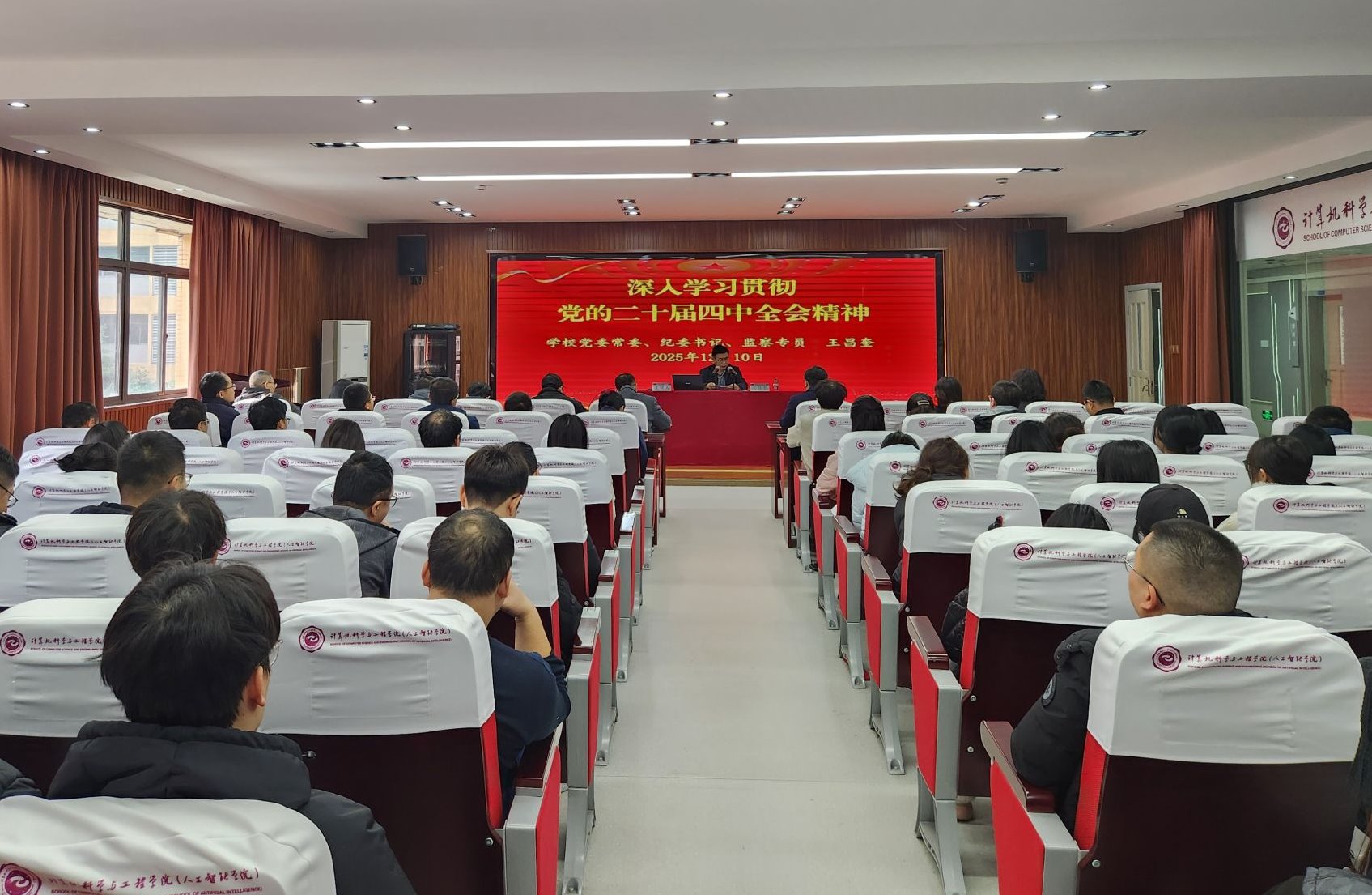 12月10日下午,学校党委常委、纪委书记王昌奎在逸夫楼I325室为计算机科学与工程学院(人工智能学院)和设计与人文学院作党的二十届四中全会精神宣讲。两学院全体教职工和学生党员参加宣讲会。